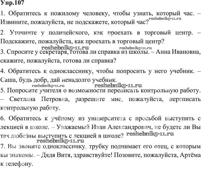 Готовая домашняя работа с ответами по Русскому языку за 8 класс Александрова, Загоровская, Богданов Учебник Просвещение 2020 ФГОС - Упражнения 107