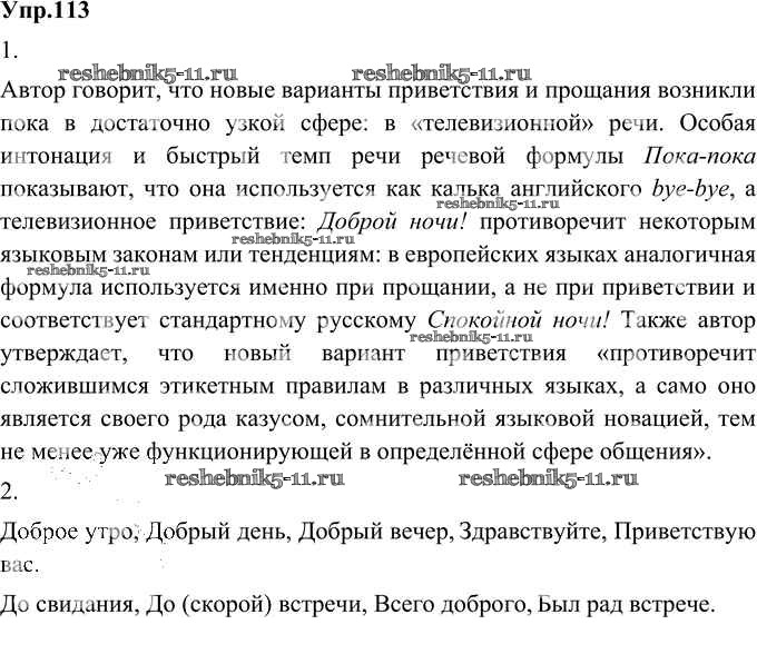 Готовая домашняя работа с ответами по Русскому языку за 8 класс Александрова, Загоровская, Богданов Учебник Просвещение 2020 ФГОС - Упражнения 113