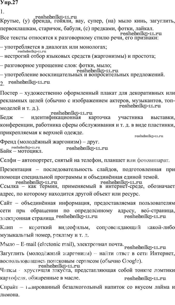 Готовая домашняя работа с ответами по Русскому языку за 8 класс Александрова, Загоровская, Богданов Учебник Просвещение 2020 ФГОС - Упражнения 27