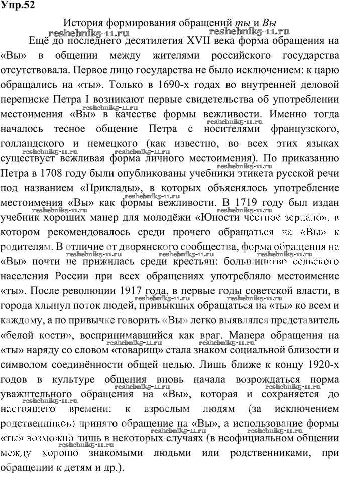 Готовая домашняя работа с ответами по Русскому языку за 8 класс Александрова, Загоровская, Богданов Учебник Просвещение 2020 ФГОС - Упражнения 52