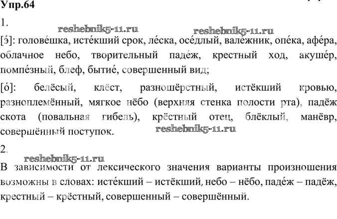 Готовая домашняя работа с ответами по Русскому языку за 8 класс Александрова, Загоровская, Богданов Учебник Просвещение 2020 ФГОС - Упражнения 64