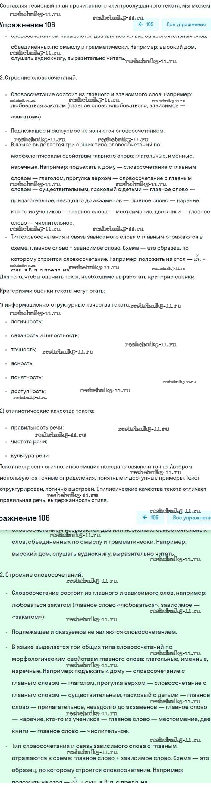 Русский язык за 8 класс Бархударов Учебник Просвещение упражнение 106