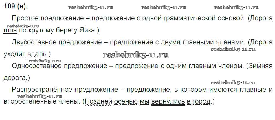 Готовая домашняя работа с ответами по Русскому языку за 8 класс Бархударов, Крючков, Максимов Учебник Просвещение 2018 ФГОС - Упражнения 109