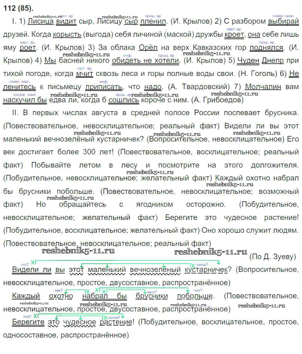Готовая домашняя работа с ответами по Русскому языку за 8 класс Бархударов, Крючков, Максимов Учебник Просвещение 2018 ФГОС - Упражнения 112