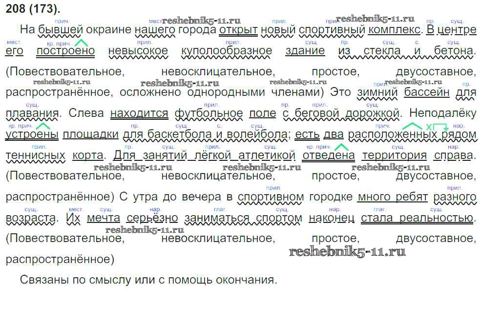 Готовая домашняя работа с ответами по Русскому языку за 8 класс Бархударов, Крючков, Максимов Учебник Просвещение 2018 ФГОС - Упражнения 208