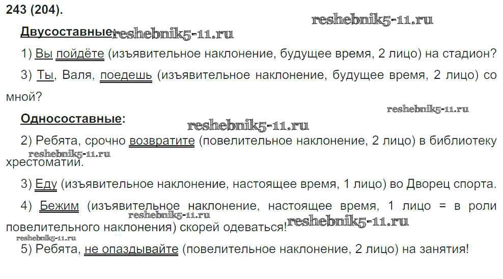 Готовая домашняя работа с ответами по Русскому языку за 8 класс Бархударов, Крючков, Максимов Учебник Просвещение 2018 ФГОС - Упражнения 243