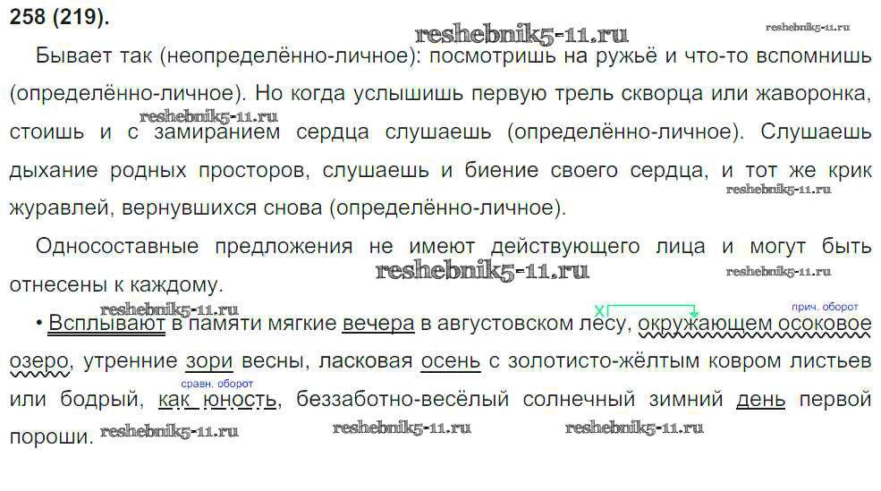 Готовая домашняя работа с ответами по Русскому языку за 8 класс Бархударов, Крючков, Максимов Учебник Просвещение 2018 ФГОС - Упражнения 258