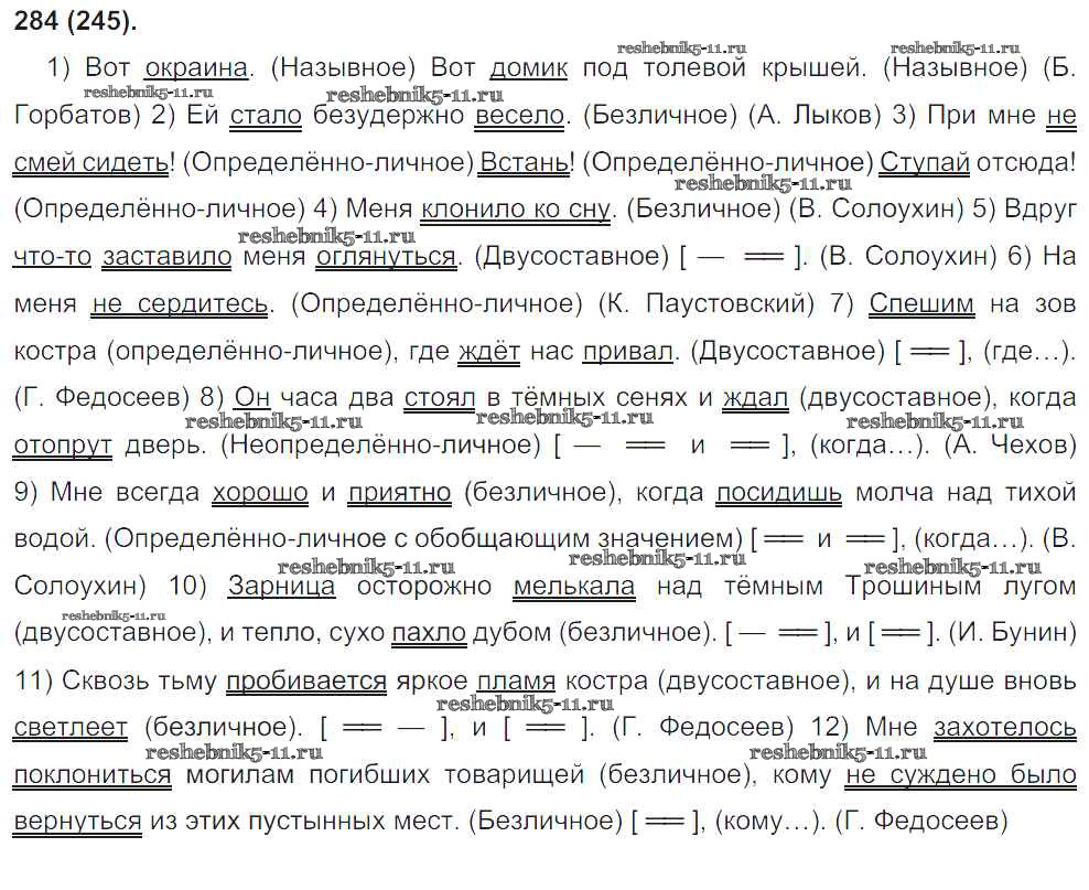 Готовая домашняя работа с ответами по Русскому языку за 8 класс Бархударов, Крючков, Максимов Учебник Просвещение 2018 ФГОС - Упражнения 284