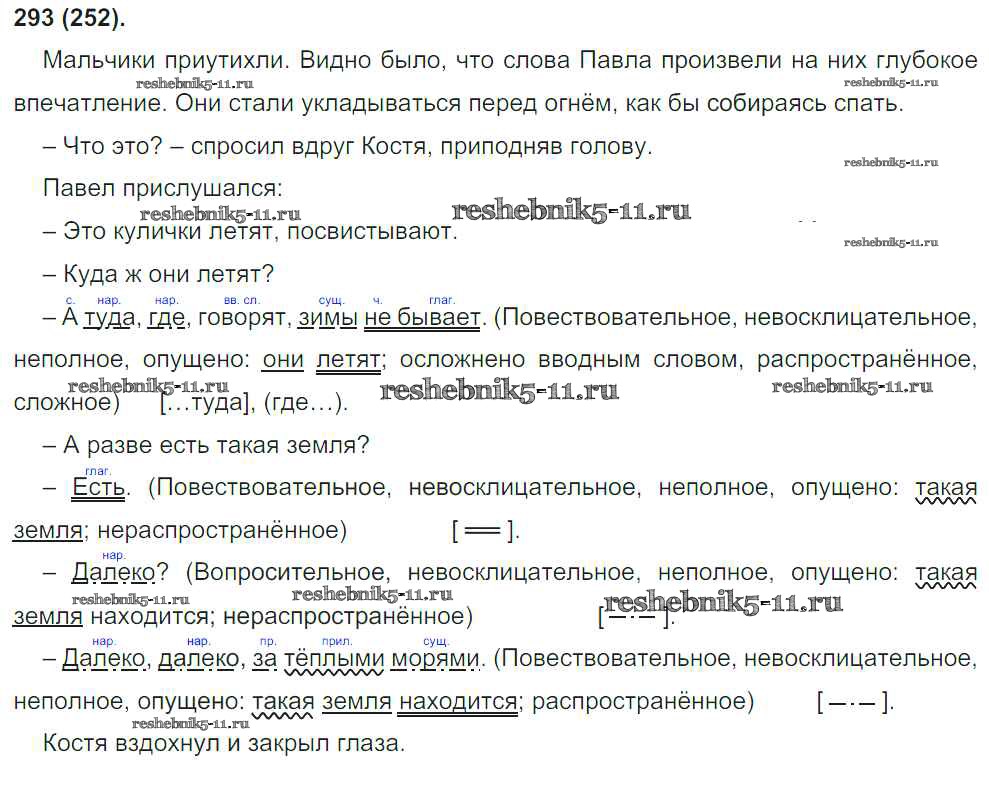 Готовая домашняя работа с ответами по Русскому языку за 8 класс Бархударов, Крючков, Максимов Учебник Просвещение 2018 ФГОС - Упражнения 293