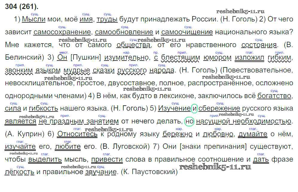 Готовая домашняя работа с ответами по Русскому языку за 8 класс Бархударов, Крючков, Максимов Учебник Просвещение 2018 ФГОС - Упражнения 304