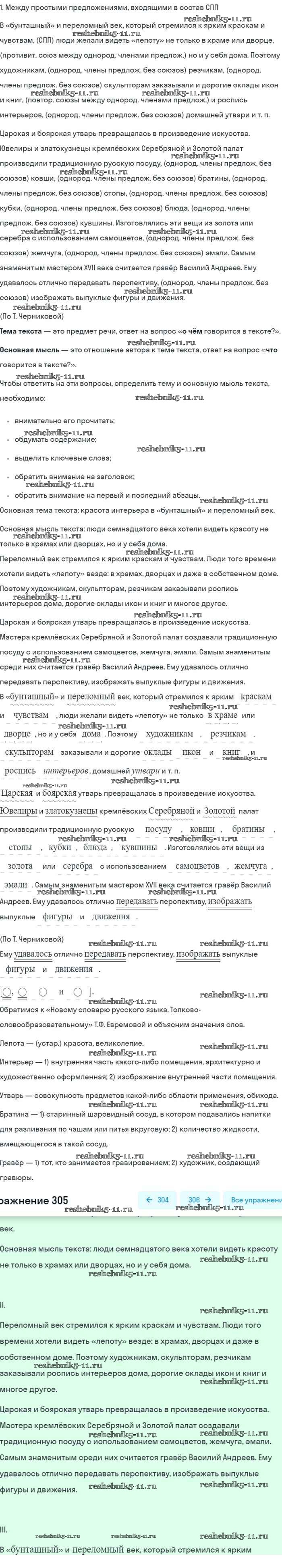 Готовая домашняя работа с ответами по Русскому языку за 8 класс Бархударов, Крючков, Максимов Учебник Просвещение 2018 ФГОС - Упражнения 305
