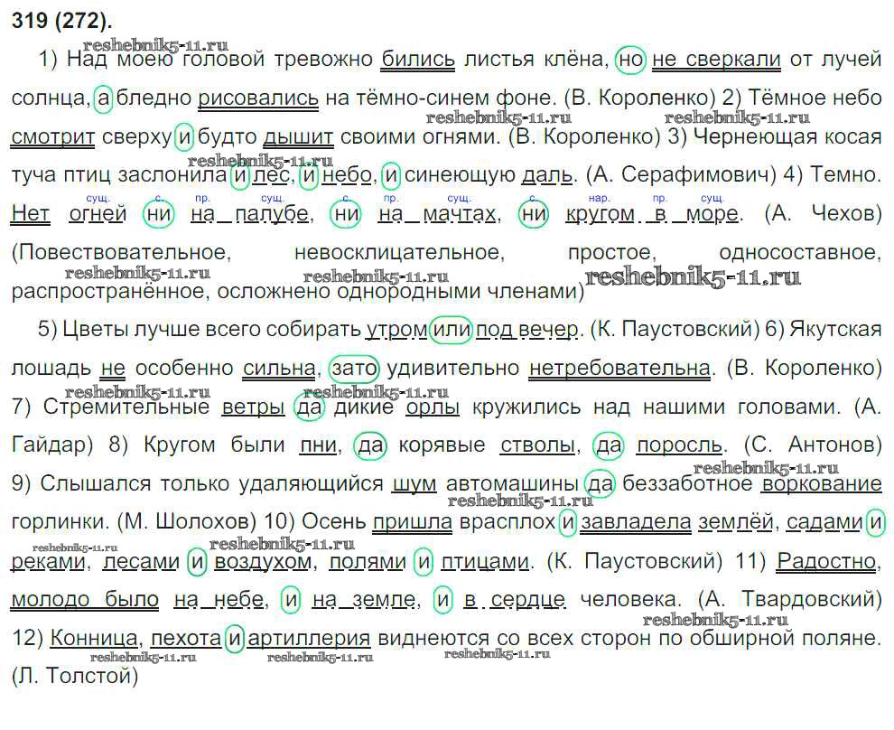 Готовая домашняя работа с ответами по Русскому языку за 8 класс Бархударов, Крючков, Максимов Учебник Просвещение 2018 ФГОС - Упражнения 319