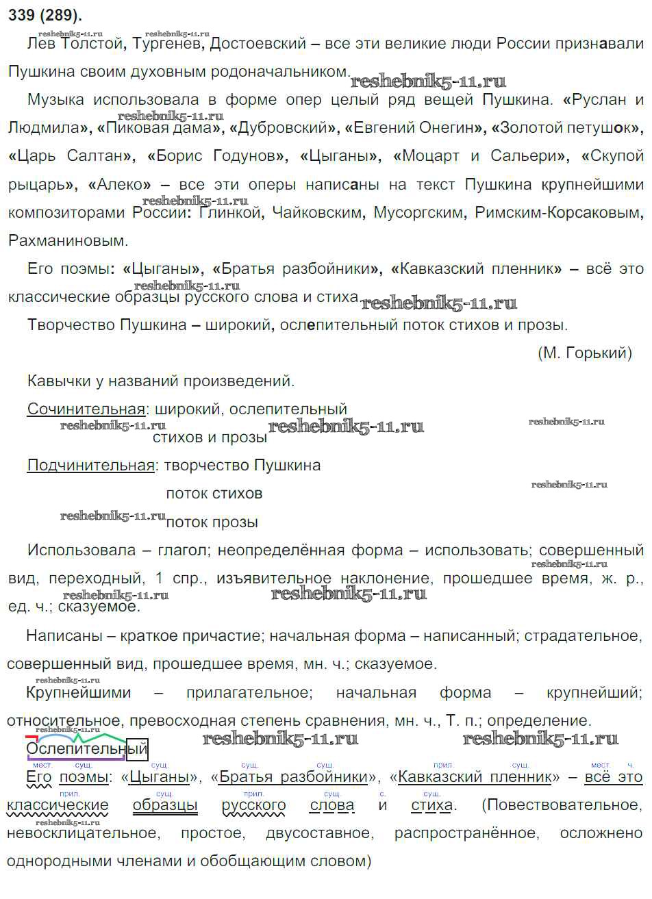 Готовая домашняя работа с ответами по Русскому языку за 8 класс Бархударов, Крючков, Максимов Учебник Просвещение 2018 ФГОС - Упражнения 339