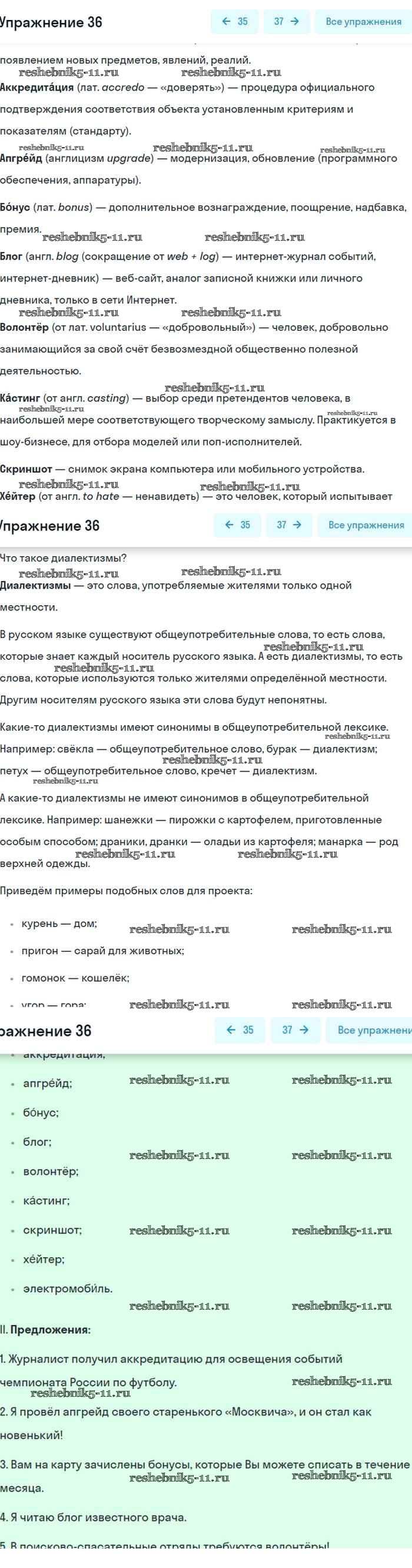 Готовая домашняя работа с ответами по Русскому языку за 8 класс Бархударов, Крючков, Максимов Учебник Просвещение 2018 ФГОС - Упражнения 36