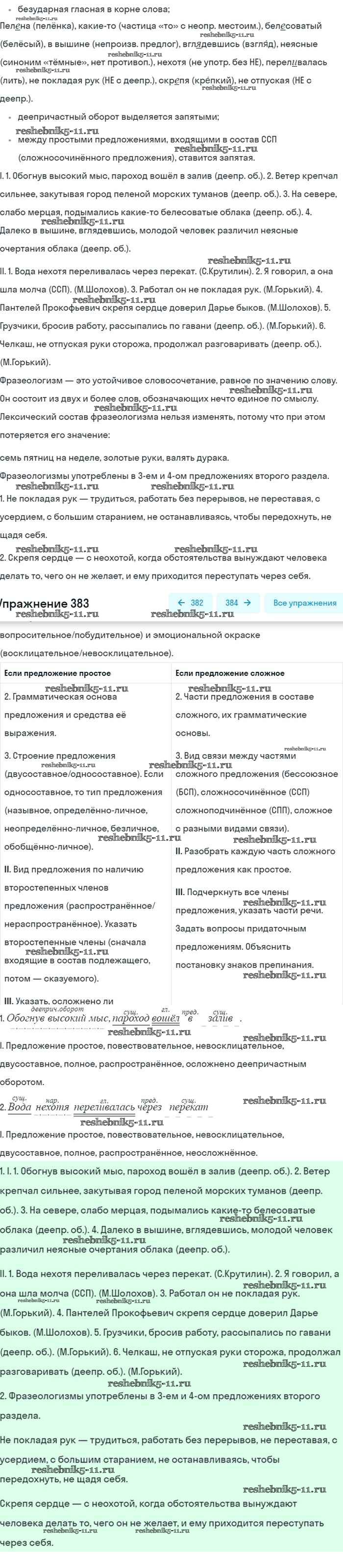 Готовая домашняя работа с ответами по Русскому языку за 8 класс Бархударов, Крючков, Максимов Учебник Просвещение 2018 ФГОС - Упражнения 383