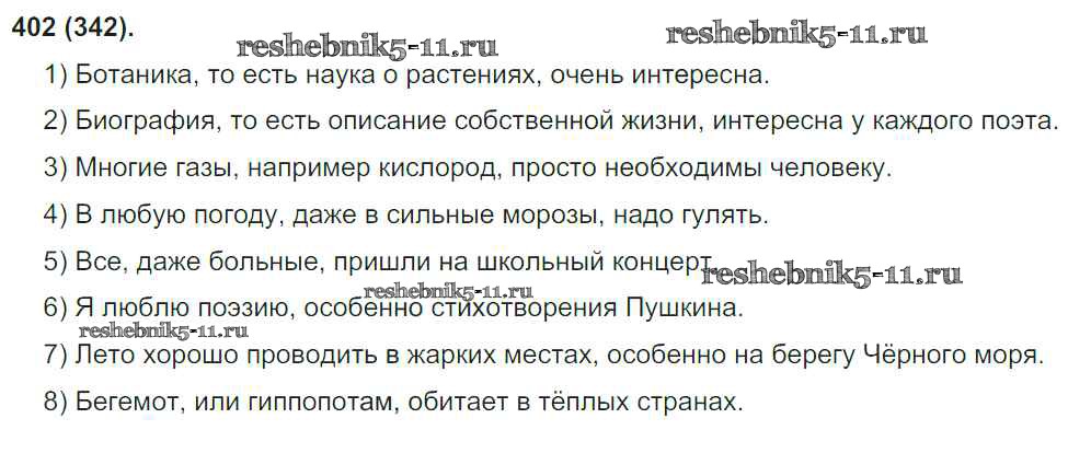 Готовая домашняя работа с ответами по Русскому языку за 8 класс Бархударов, Крючков, Максимов Учебник Просвещение 2018 ФГОС - Упражнения 402