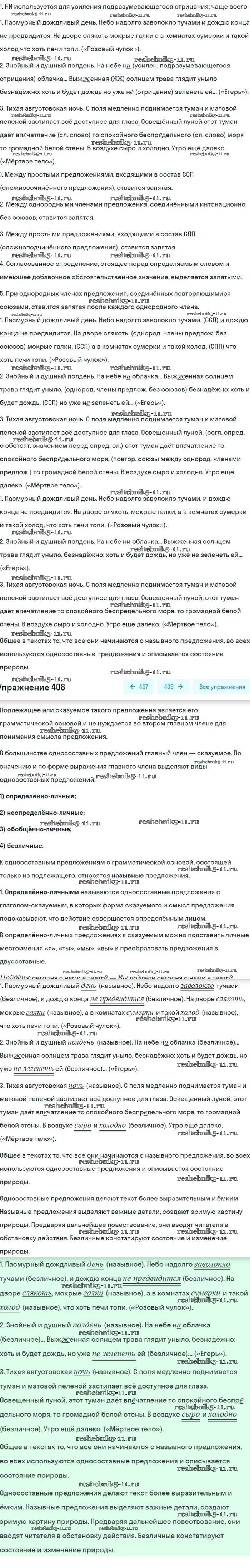 Готовая домашняя работа с ответами по Русскому языку за 8 класс Бархударов, Крючков, Максимов Учебник Просвещение 2018 ФГОС - Упражнения 408
