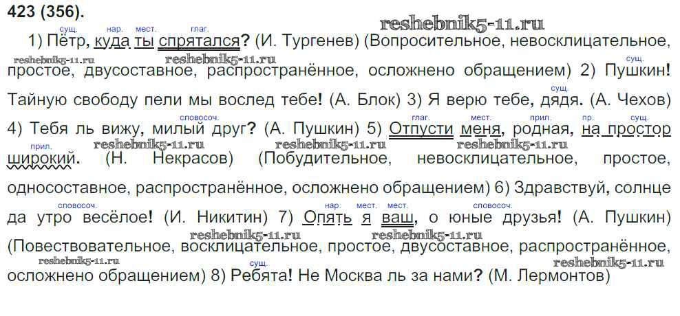 Готовая домашняя работа с ответами по Русскому языку за 8 класс Бархударов, Крючков, Максимов Учебник Просвещение 2018 ФГОС - Упражнения 423