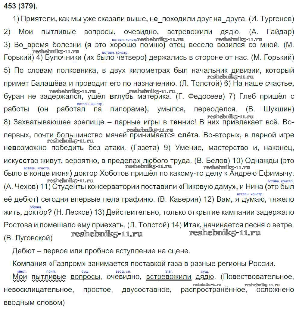 Готовая домашняя работа с ответами по Русскому языку за 8 класс Бархударов, Крючков, Максимов Учебник Просвещение 2018 ФГОС - Упражнения 453