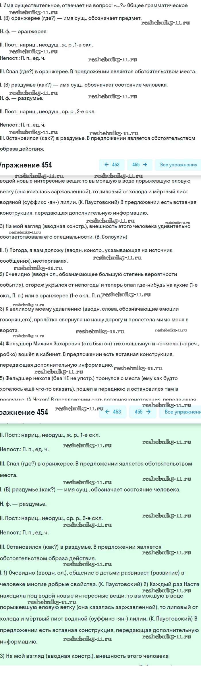 Готовая домашняя работа с ответами по Русскому языку за 8 класс Бархударов, Крючков, Максимов Учебник Просвещение 2018 ФГОС - Упражнения 454