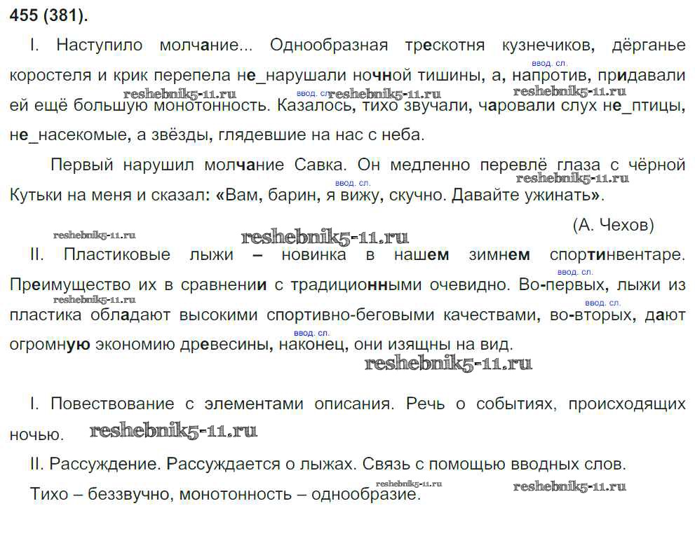 Готовая домашняя работа с ответами по Русскому языку за 8 класс Бархударов, Крючков, Максимов Учебник Просвещение 2018 ФГОС - Упражнения 455