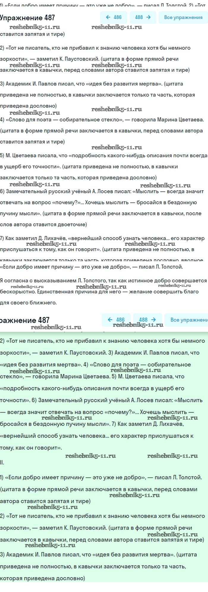 Готовая домашняя работа с ответами по Русскому языку за 8 класс Бархударов, Крючков, Максимов Учебник Просвещение 2018 ФГОС - Упражнения 487