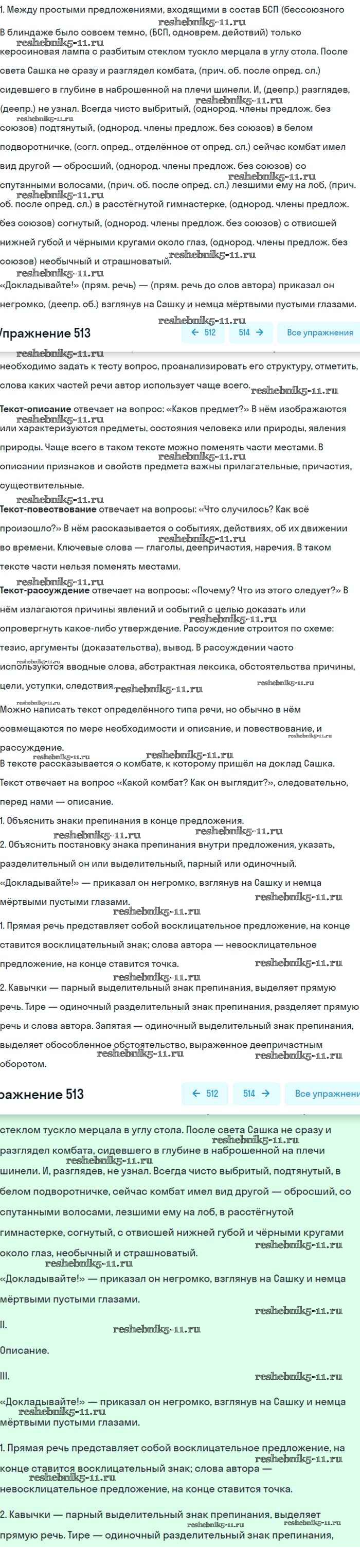 Готовая домашняя работа с ответами по Русскому языку за 8 класс Бархударов, Крючков, Максимов Учебник Просвещение 2018 ФГОС - Упражнения 513