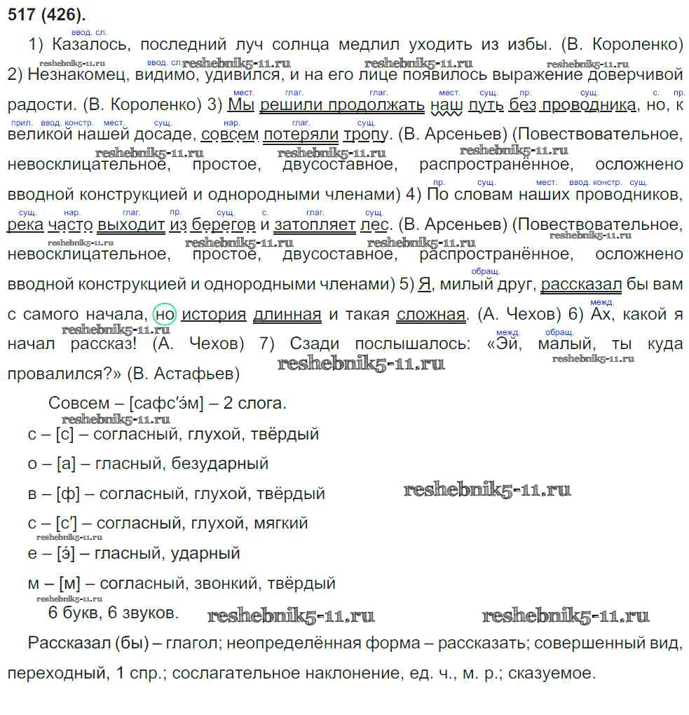 Русский язык за 8 класс Бархударов Учебник Просвещение упражнение 517