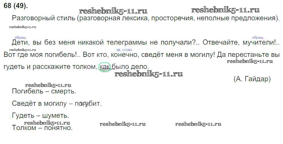 Готовая домашняя работа с ответами по Русскому языку за 8 класс Бархударов, Крючков, Максимов Учебник Просвещение 2018 ФГОС - Упражнения 68
