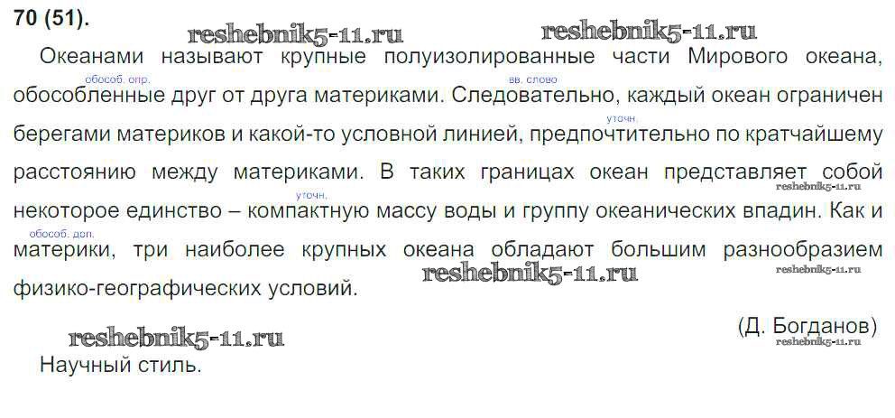 Готовая домашняя работа с ответами по Русскому языку за 8 класс Бархударов, Крючков, Максимов Учебник Просвещение 2018 ФГОС - Упражнения 70