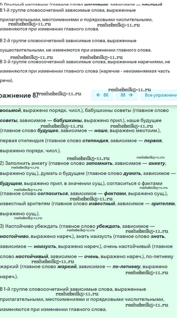 Готовая домашняя работа с ответами по Русскому языку за 8 класс Бархударов, Крючков, Максимов Учебник Просвещение 2018 ФГОС - Упражнения 87