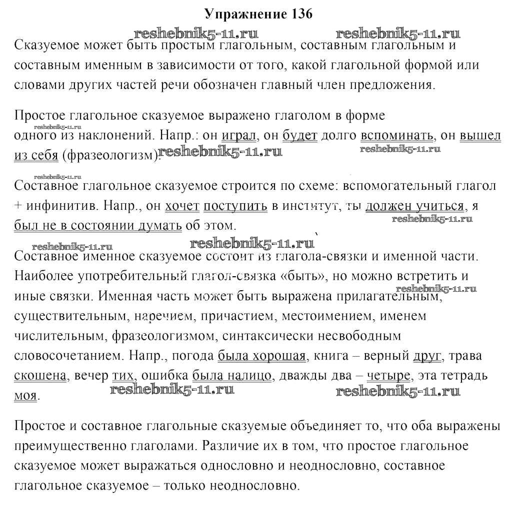 Готовая домашняя работа с ответами по Русскому языку за 8 класс Мурина, Игнатович, Жадейко Учебник Национальный институт образования 2018 ФГОС - Задания 136