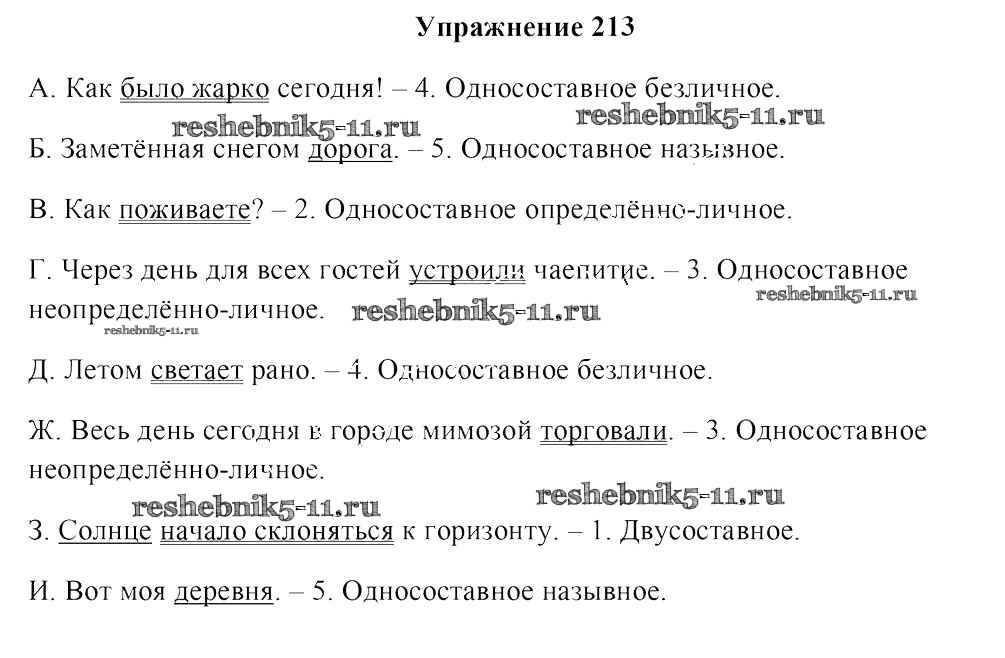 Готовая домашняя работа с ответами по Русскому языку за 8 класс Мурина, Игнатович, Жадейко Учебник Национальный институт образования 2018 ФГОС - Задания 213