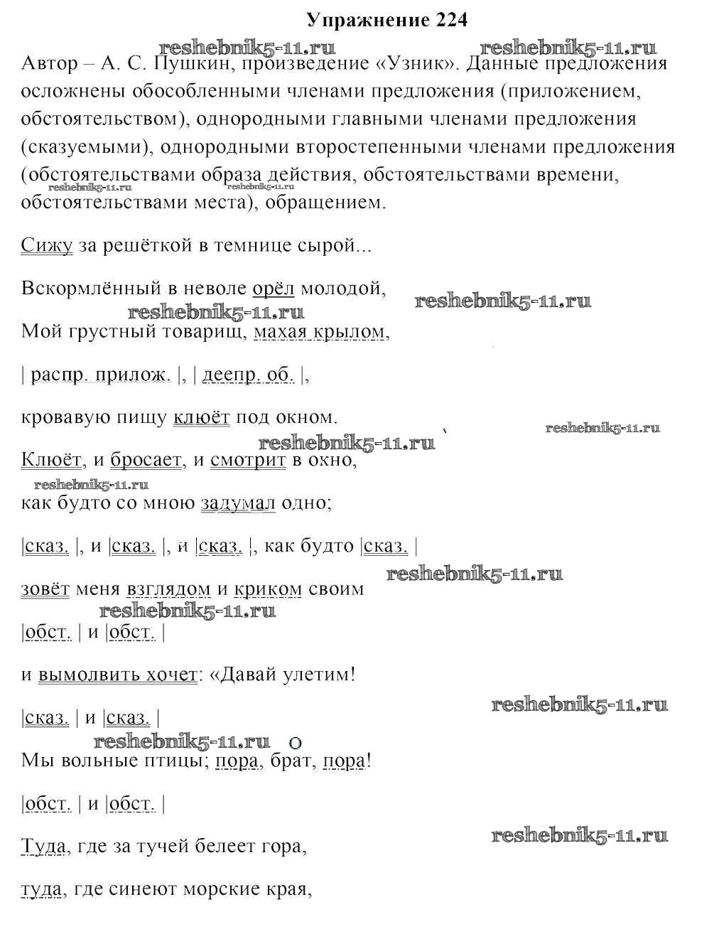 Готовая домашняя работа с ответами по Русскому языку за 8 класс Мурина, Игнатович, Жадейко Учебник Национальный институт образования 2018 ФГОС - Задания 224