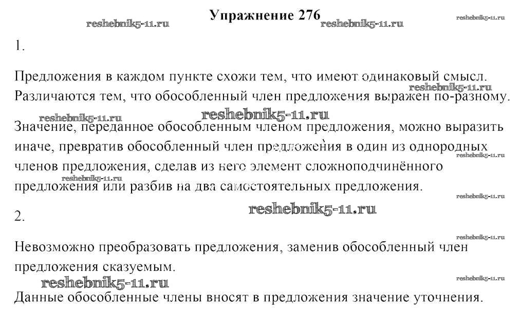 Готовая домашняя работа с ответами по Русскому языку за 8 класс Мурина, Игнатович, Жадейко Учебник Национальный институт образования 2018 ФГОС - Задания 276