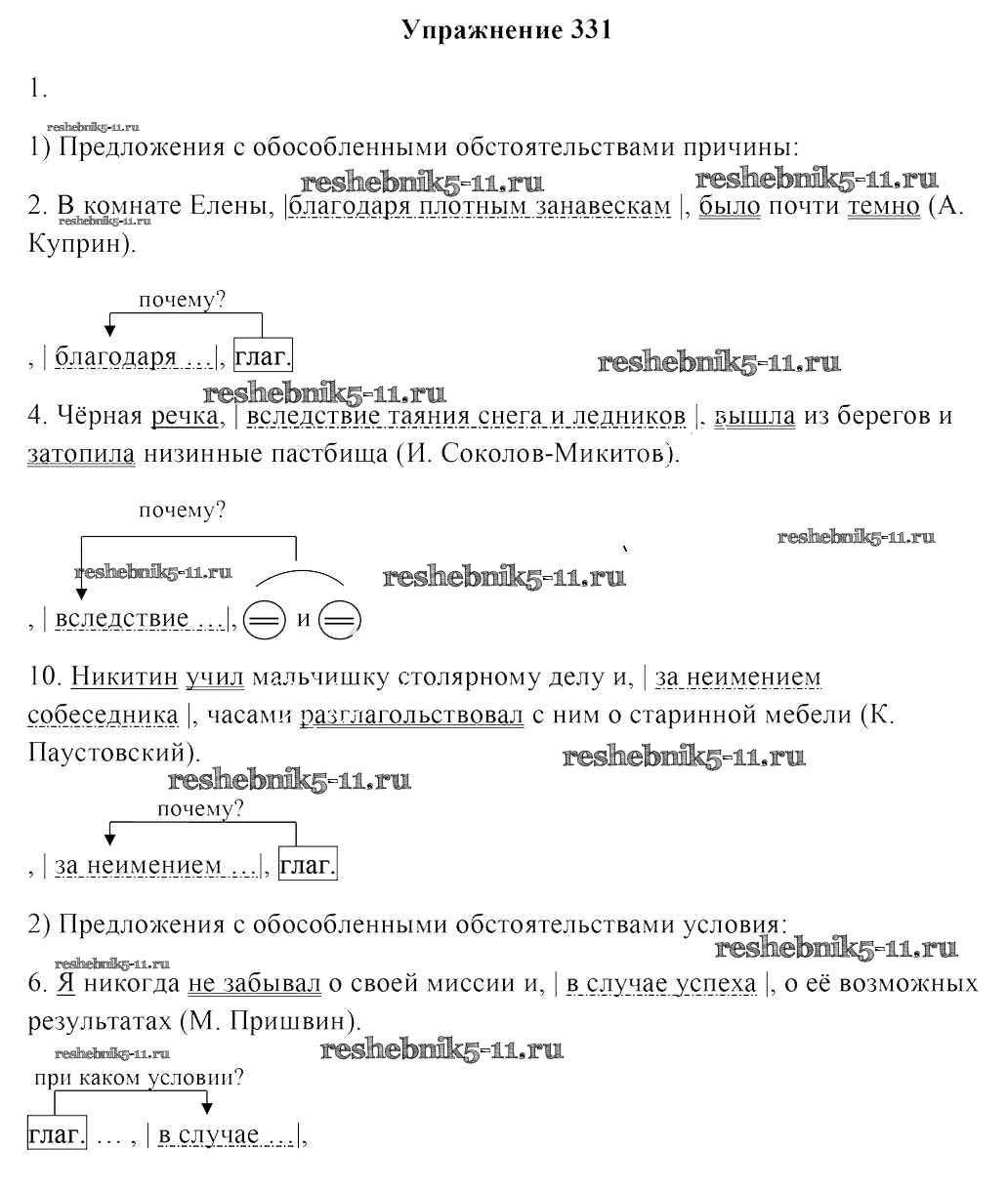 Готовая домашняя работа с ответами по Русскому языку за 8 класс Мурина, Игнатович, Жадейко Учебник Национальный институт образования 2018 ФГОС - Задания 331