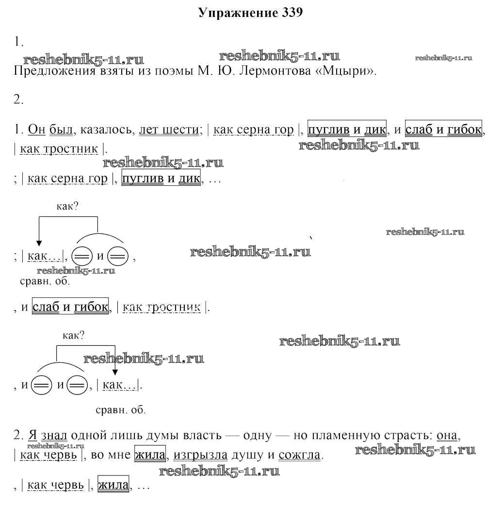 Готовая домашняя работа с ответами по Русскому языку за 8 класс Мурина, Игнатович, Жадейко Учебник Национальный институт образования 2018 ФГОС - Задания 339