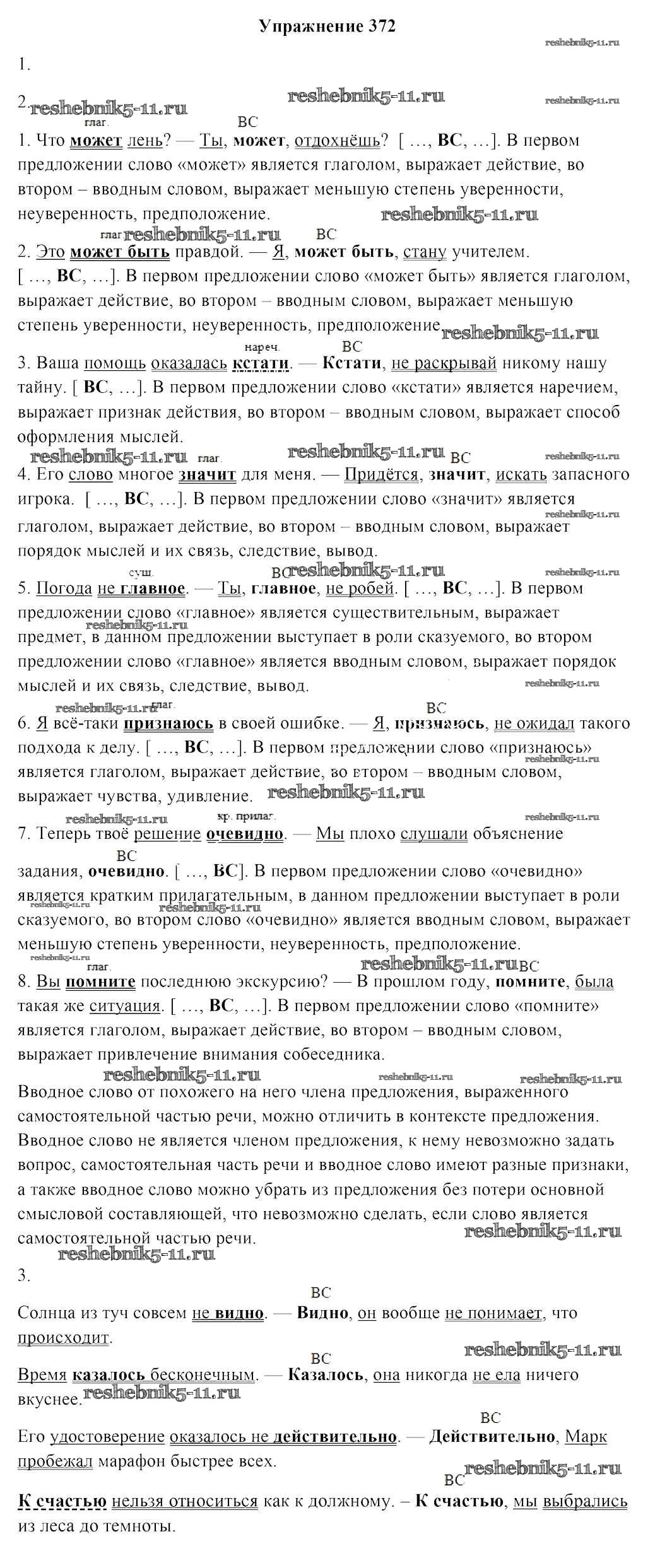 Готовая домашняя работа с ответами по Русскому языку за 8 класс Мурина, Игнатович, Жадейко Учебник Национальный институт образования 2018 ФГОС - Задания 372