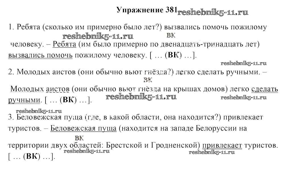 Готовая домашняя работа с ответами по Русскому языку за 8 класс Мурина, Игнатович, Жадейко Учебник Национальный институт образования 2018 ФГОС - Задания 381