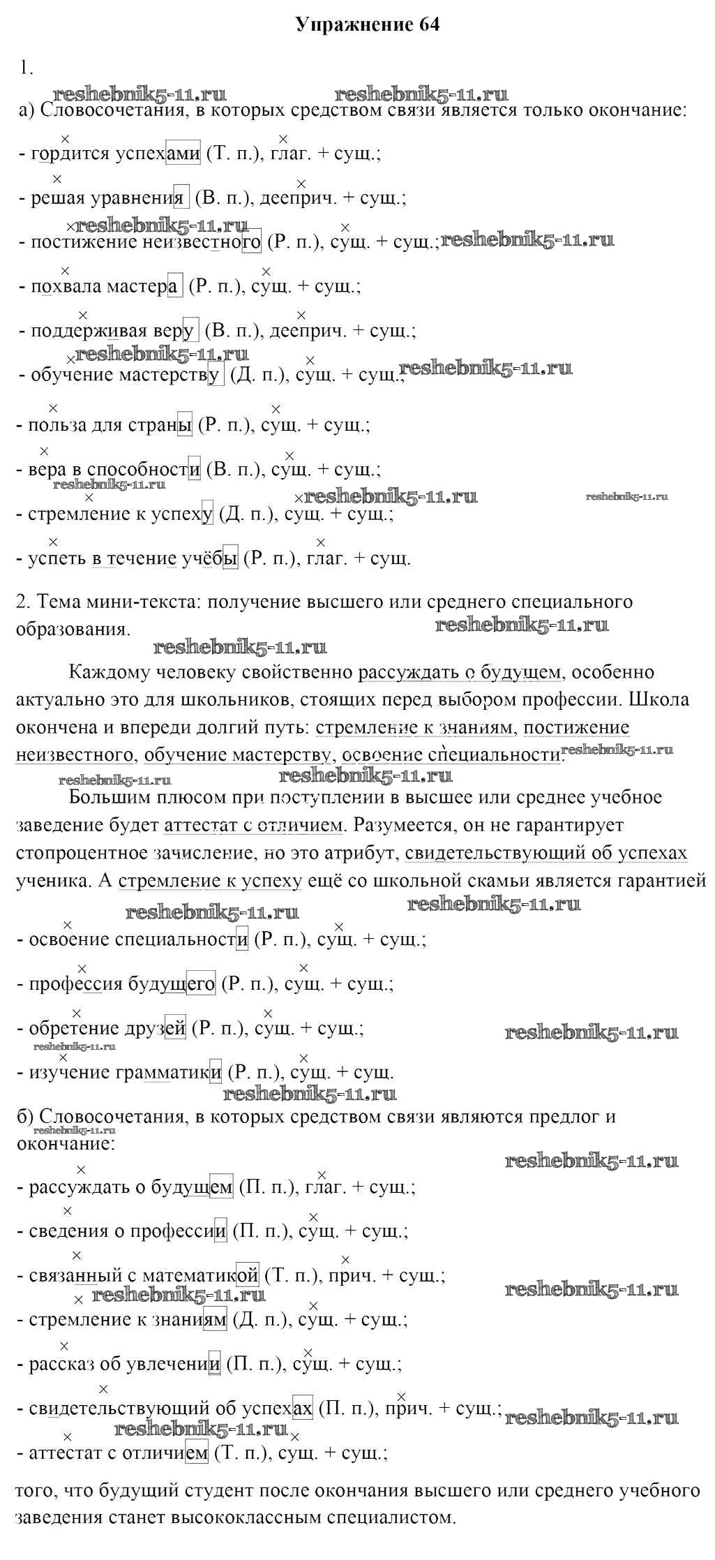 Готовая домашняя работа с ответами по Русскому языку за 8 класс Мурина, Игнатович, Жадейко Учебник Национальный институт образования 2018 ФГОС - Задания 64