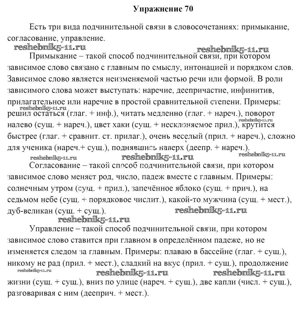Готовая домашняя работа с ответами по Русскому языку за 8 класс Мурина, Игнатович, Жадейко Учебник Национальный институт образования 2018 ФГОС - Задания 70