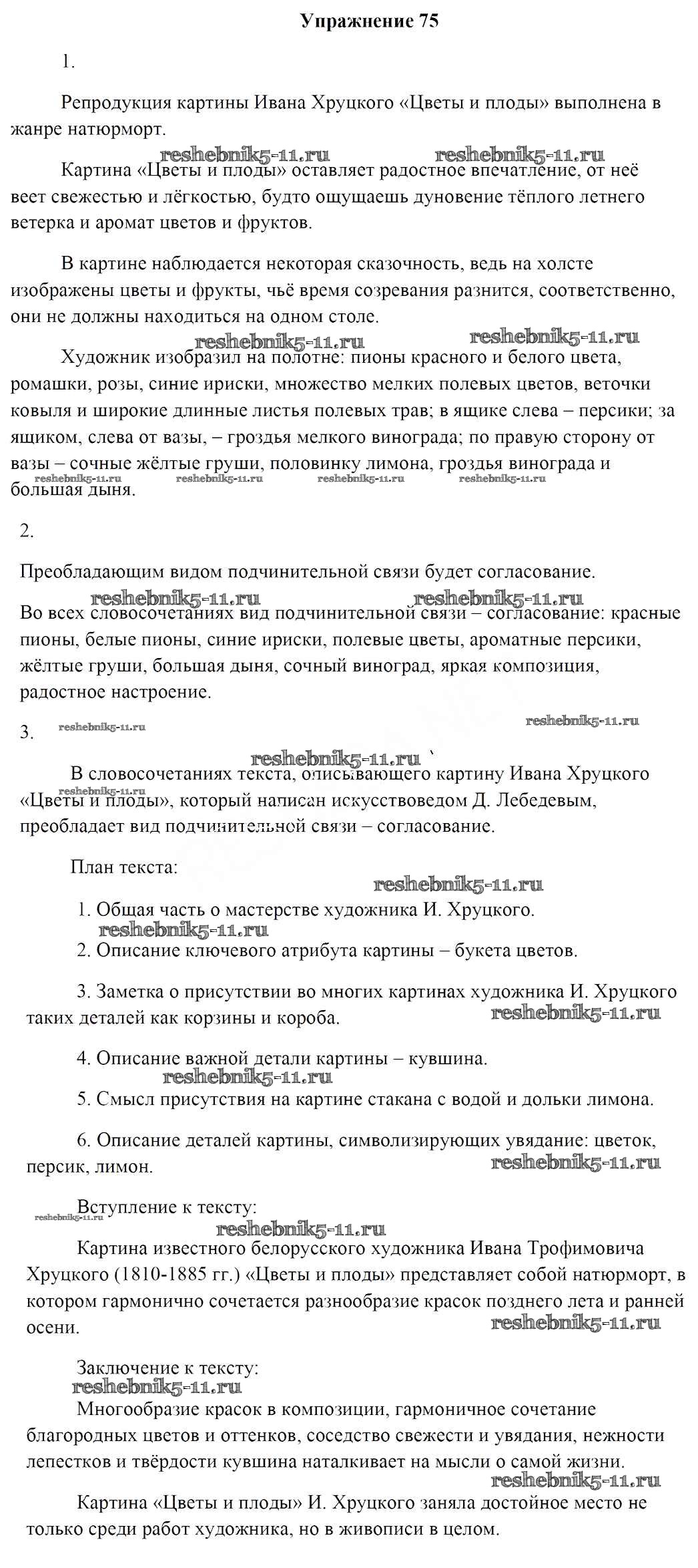 Готовая домашняя работа с ответами по Русскому языку за 8 класс Мурина, Игнатович, Жадейко Учебник Национальный институт образования 2018 ФГОС - Задания 75