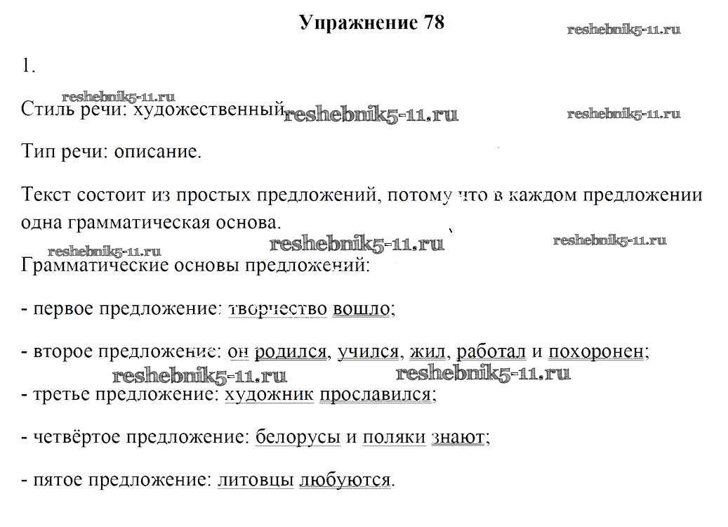Готовая домашняя работа с ответами по Русскому языку за 8 класс Мурина, Игнатович, Жадейко Учебник Национальный институт образования 2018 ФГОС - Задания 78