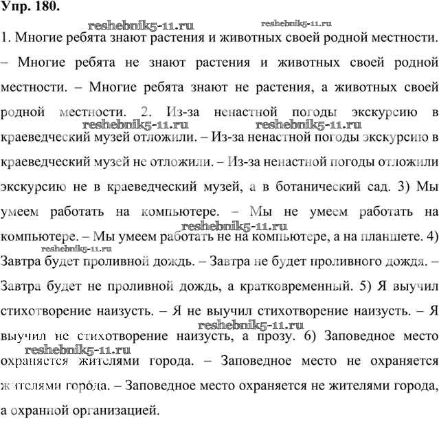 Готовая домашняя работа с ответами по Русскому языку за 8 класс Быстрова, Кибирева, Воителева Учебник Инновационная школа Часть 1, 2 Русское слово 2019 ФГОС - Упражнения 180