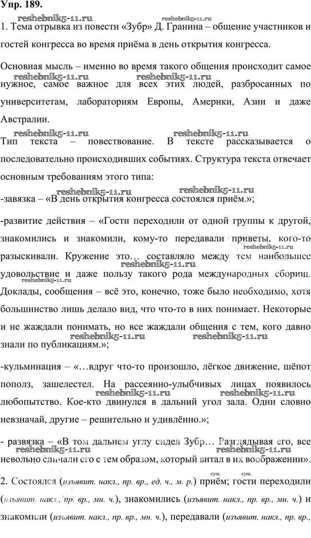 Готовая домашняя работа с ответами по Русскому языку за 8 класс Быстрова, Кибирева, Воителева Учебник Инновационная школа Часть 1, 2 Русское слово 2019 ФГОС - Упражнения 189