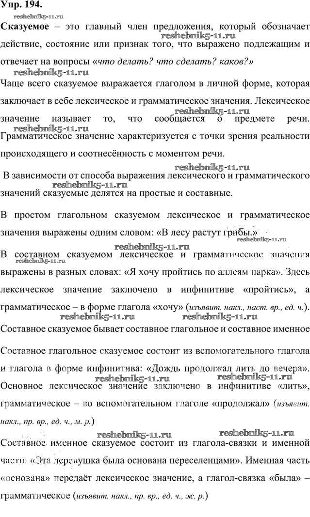 Русский язык за 8 класс Быстрова Учебник Инновационная школа Русское слово упражнение 194