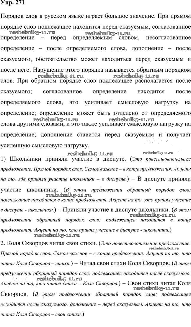 Русский язык за 8 класс Быстрова Учебник Инновационная школа Русское слово упражнение 271