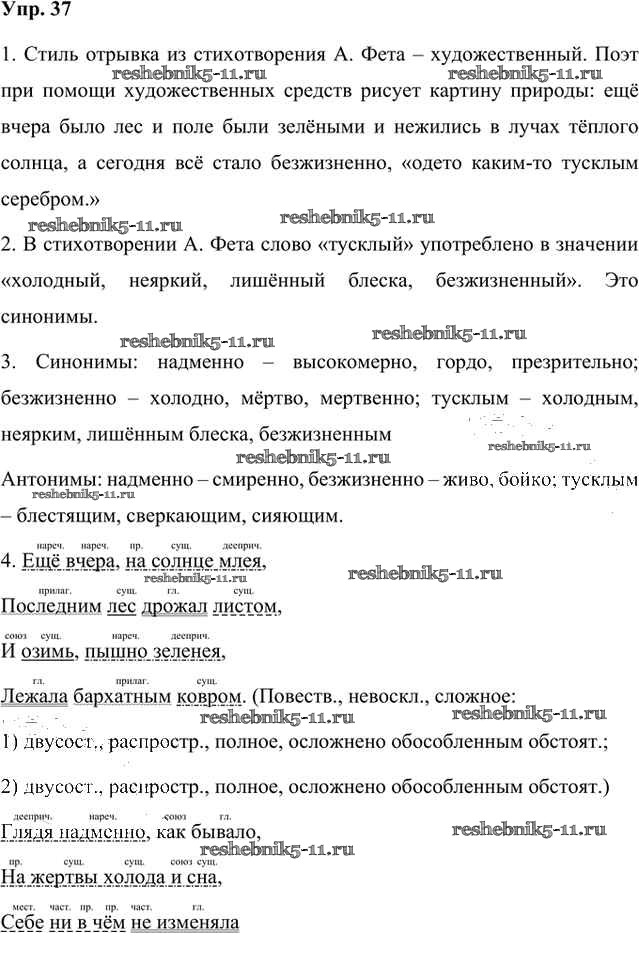 Готовая домашняя работа с ответами по Русскому языку за 8 класс Быстрова, Кибирева, Воителева Учебник Инновационная школа Часть 1, 2 Русское слово 2019 ФГОС - Упражнения 37