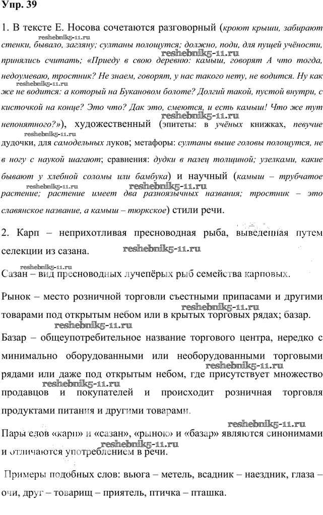 Русский язык за 8 класс Быстрова Учебник Инновационная школа Русское слово упражнение 39