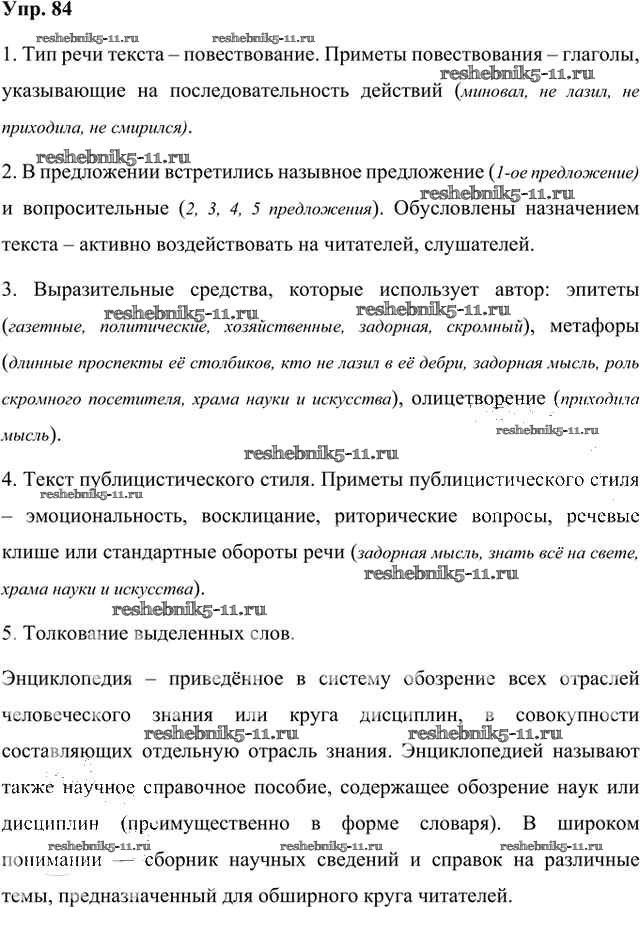 Готовая домашняя работа с ответами по Русскому языку за 8 класс Быстрова, Кибирева, Воителева Учебник Инновационная школа Часть 1, 2 Русское слово 2019 ФГОС - Упражнения 84